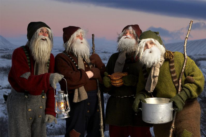در ۱۳ روز منتهی به کریسمس، ۱۳ شخصیت بازیگوش به نام «جوانکهای یول» (The Yule Lads) در ایسلند ظاهر میشوند. هر شب بچهها بهترین کفشهایشان را کنار پنجره میگذارند و جوانک یولِ مخصوصِ آن شب، در کفش برای بچههای خوب، هدیه و برای بچههای بد، سیبزمینی گندیده قرار میدهد. این شخصیتها لباسهای مبدل محلی ایسلند را میپوشند و کارشان دردسر درست کردن است. هر یک نام مخصوص به خود را دارند که کار شیطنت آمیزشان را توصیف میکند؛ مثلاً «گوسفند دزد» (Stekkjastaur)، «دزد آبراههها» (Gully Gawk)، «استوبی ماهیتابه دزد» (Stúfur)، «قاشق لیسزن» (Þvörusleikir)، «ته مانده خور» (Pottaskefill)، «کاسه لیسزن» (Pottaskefill) و غیره، که هر کدام را در روز خودش میتوانید ببینید.