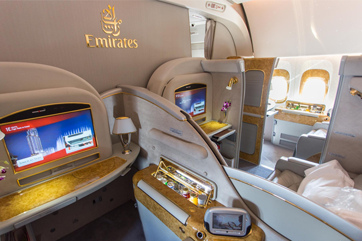 ایرلاین امارات به خاطر مهمان نوازی و خدمات بسیار لوکس پروازهای بیزنس کلاسش شهرت فراوانی داشته و در دبی استقرار دارد. این ایرلاین که از نظر تعداد مسافر چهارمین ایرلاین بزرگ جهان محسوب میشود ، هر هفته بیش از 3 هزار پرواز اجرا کرده و یکی از معدود ایرلاین هایی به شمار میرود که به 6 قاره دنیا پرواز دارد. مقاصد پروازی ایرلاین امارات شامل 140فرودگاه در 70 کشور دنیا میشود. برنامه مخصوص مسافران پر رفت و آمد این شرکت ( امیریتس واردز ) emirates skywards نام دارد. ایرلاین امارات از سیستم ICE استفاده بهره مند میبرد. این سیستم دارای بیش از 600 تا 1200 کانال تلویزیونی ، سیستم خبری 3000 i، اپدیت اتوماتیک اخبار، مشاهده دوربین خارج هواپیما ، سرویس اینترنت ، سرویس تلویزیون زنده ، ایمیل سرور، بازی های ویدئویی ، فیلم و انیمیشن ، کانال های صوتی و ... است.