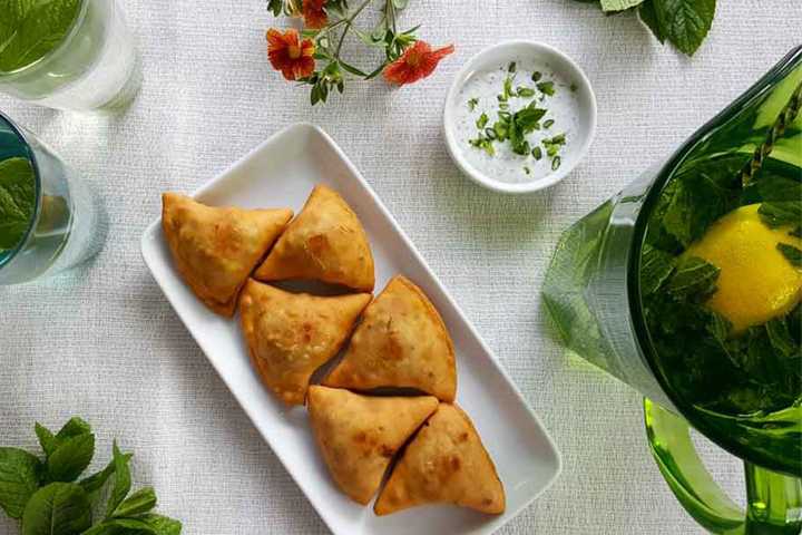 سنبوسه (سمبوسه): نوعی قطابه که در روغن سرخ میشه و داخلش گوشت یا سبزیهای معطر میریزن.