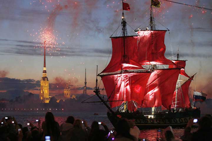 این فستیوال شامل مجموعه هایی از قبیل رقص زیبای باله، اپرا کلاسیک و موسیقی و برنامه هایی است که توسط خواننده ها و رقصنده ها و نوازندگان روسی انجام میشود. جش بادبان سرخ نقطه ی اوج این مراسم میباشد . فستیوال بادبان های سرخ بزرگترین فستیوال فضای باز روسیه است که در زمان شبهای سفید سنت پترزبورگ برگزار میشود. این فستیوال برگرفته از داستانی زیبا از الکساندر گرین نوسینده روسی میباشد.